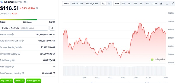 Solana currently trades firmly above $145, smashing through resistance levels that blocked it for weeks. Traders feel excited as the asset targets a quick push toward $150 and possibly $190. Data confirms big institutions are jumping in hard, with Spot Solana ETFs recording $5.91 million in net inflows on January 13 alone. This fresh money fuels a strong rally backed by rising trading volumes. Experts say the current Solana price prediction looks very positive as buyers defend key support areas. Technical patterns show a major breakout is happening right now.