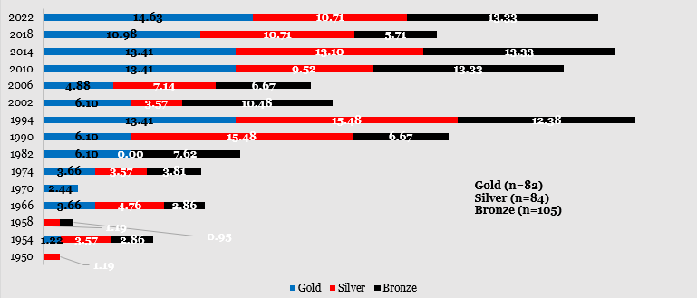 Exhibit 4: Percentage Contribution of Commonwealth Games Medals’ Winning to Olympic Medals’ Winning