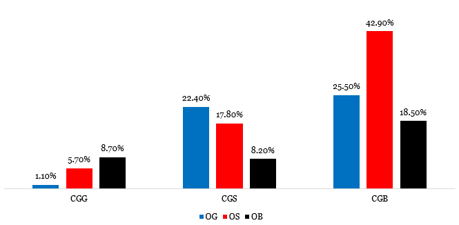 Bronze medals at the Commonwealth Games had a greater impact on the winning attitudes of athletes during previous Olympic editions than other medal categories, according to our analysis of the relationship between winning medals at the Commonwealth Games and achieving the same result during Olympic editions. Nigeria had a 42.90 percent greater chance of earning silver medals at previous Olympic competitions after winning bronze. Over a quarter of the gold medals won at the Olympic Games came from the bronze category. Analysis also reveals that Nigeria’s past Commonwealth Games silver medals helped the country achieve gold, silver, and bronze at the Olympics at a moderately high percentage (see Exhibit 4).