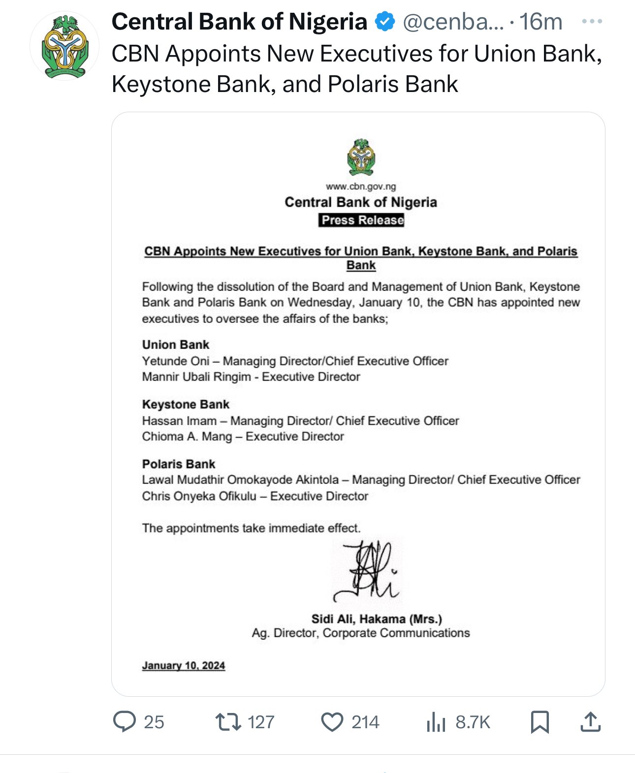 What would you be looking for in the Nigerian stock exchange tomorrow? I will be looking at how the market will react to the hammer on Union, Keystone, and Polaris banks, with the apex bank suspension of their board and management teams.