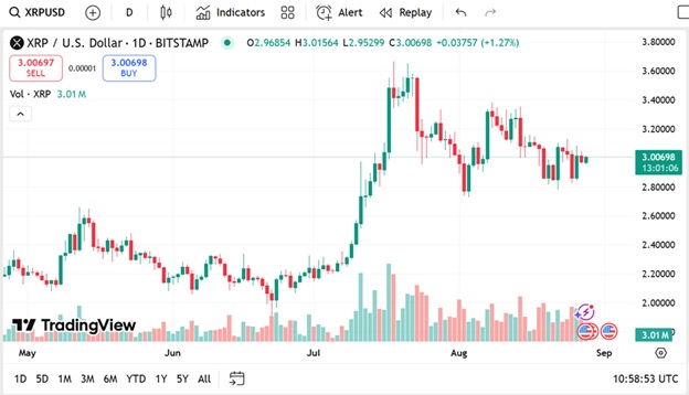 At $2.99, having declined by 0.61% in the past 24 hours, XRP still has a massive market capitalization of $178.35 billion and maintains a daily trading volume of $6.63 billion even as it declined by 3.68%.